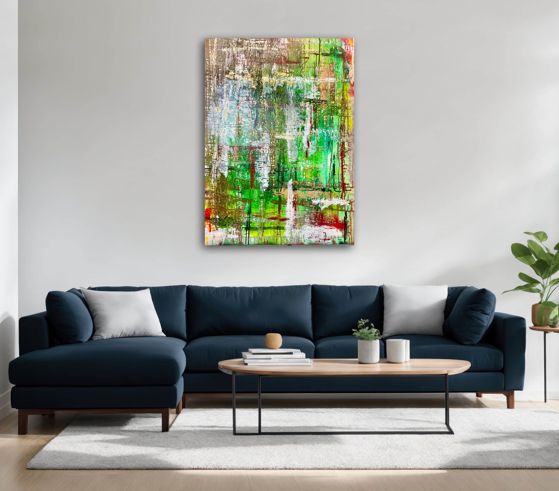 For original canvas art use a white cotton cloth lightly dampened in a gentle soapy water. DO NOT USE HARSH ABRASIVE SOLVENTS.