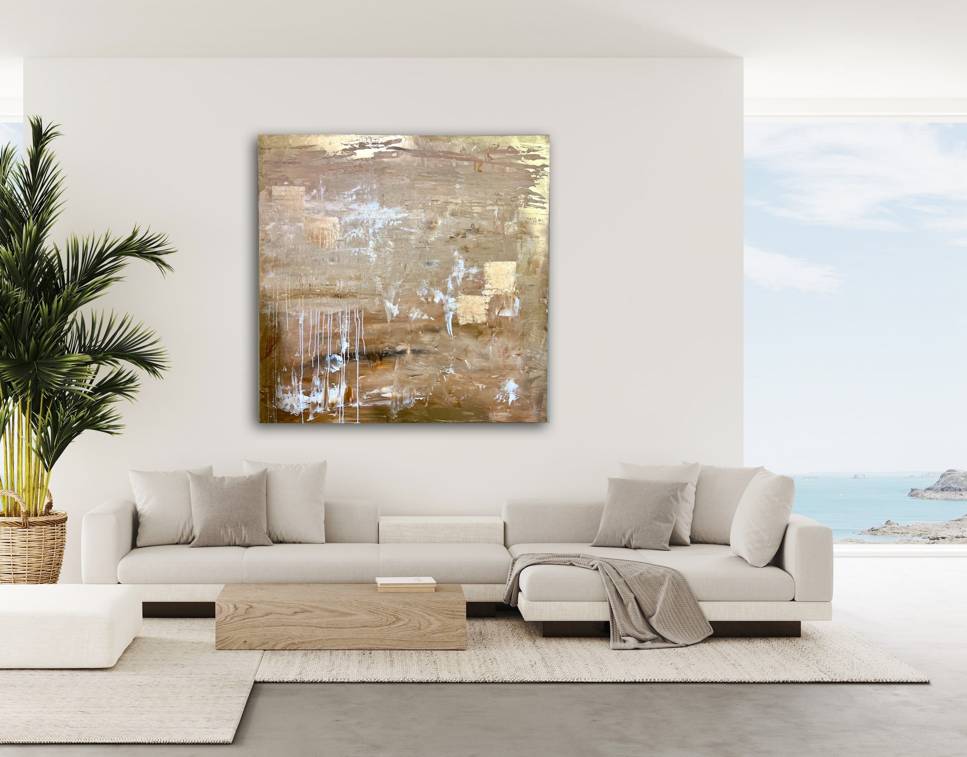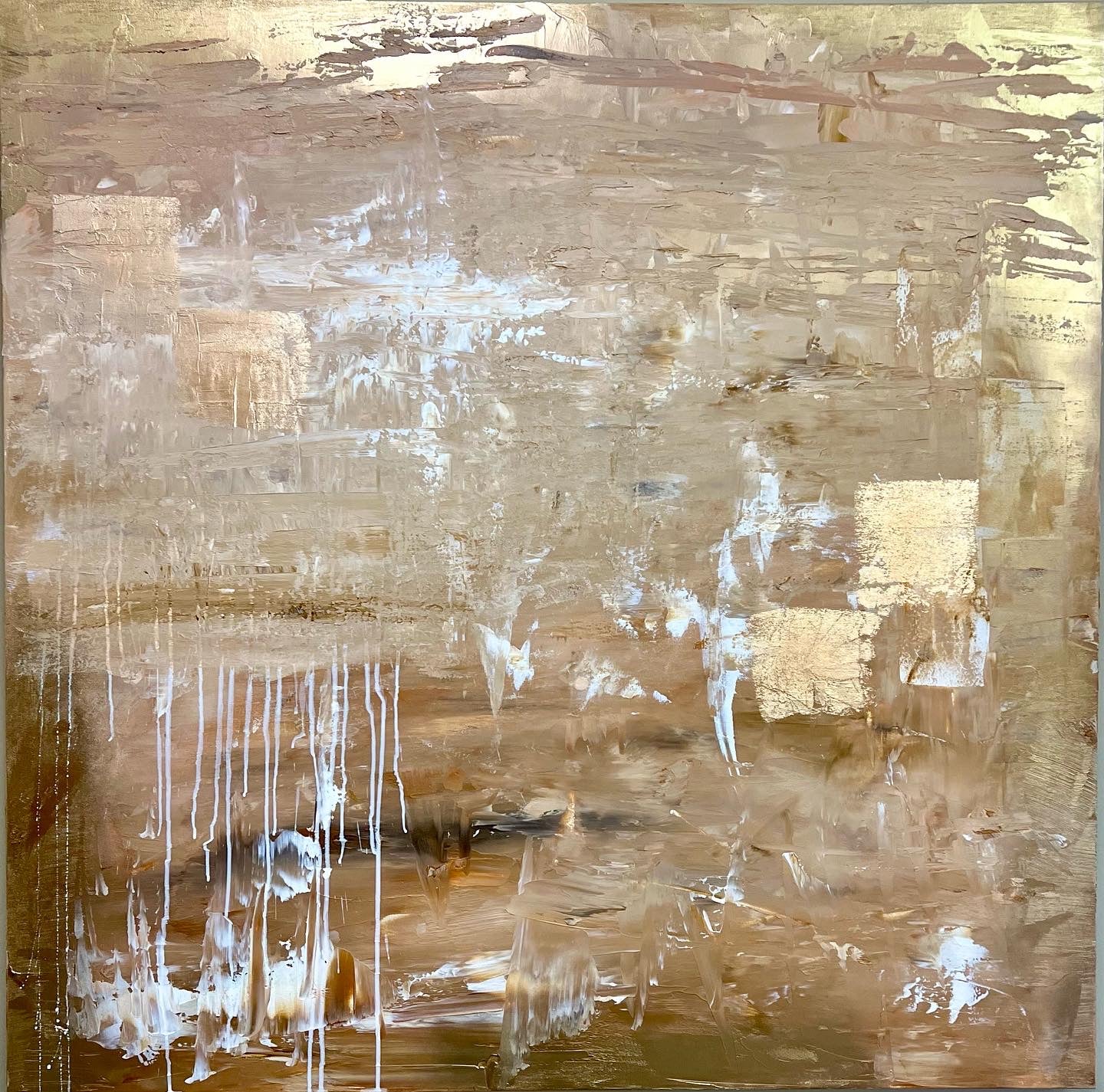Acrylic paint, modeling paste, gold leaf