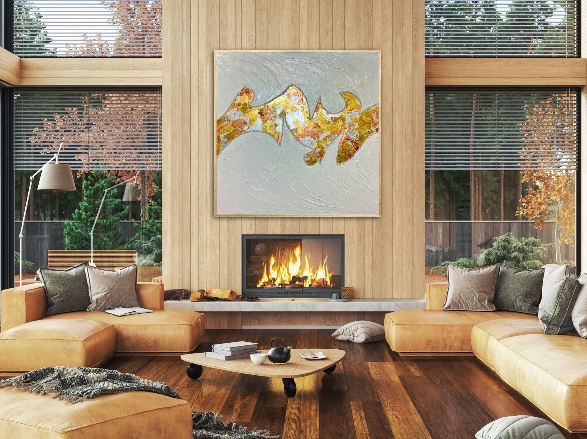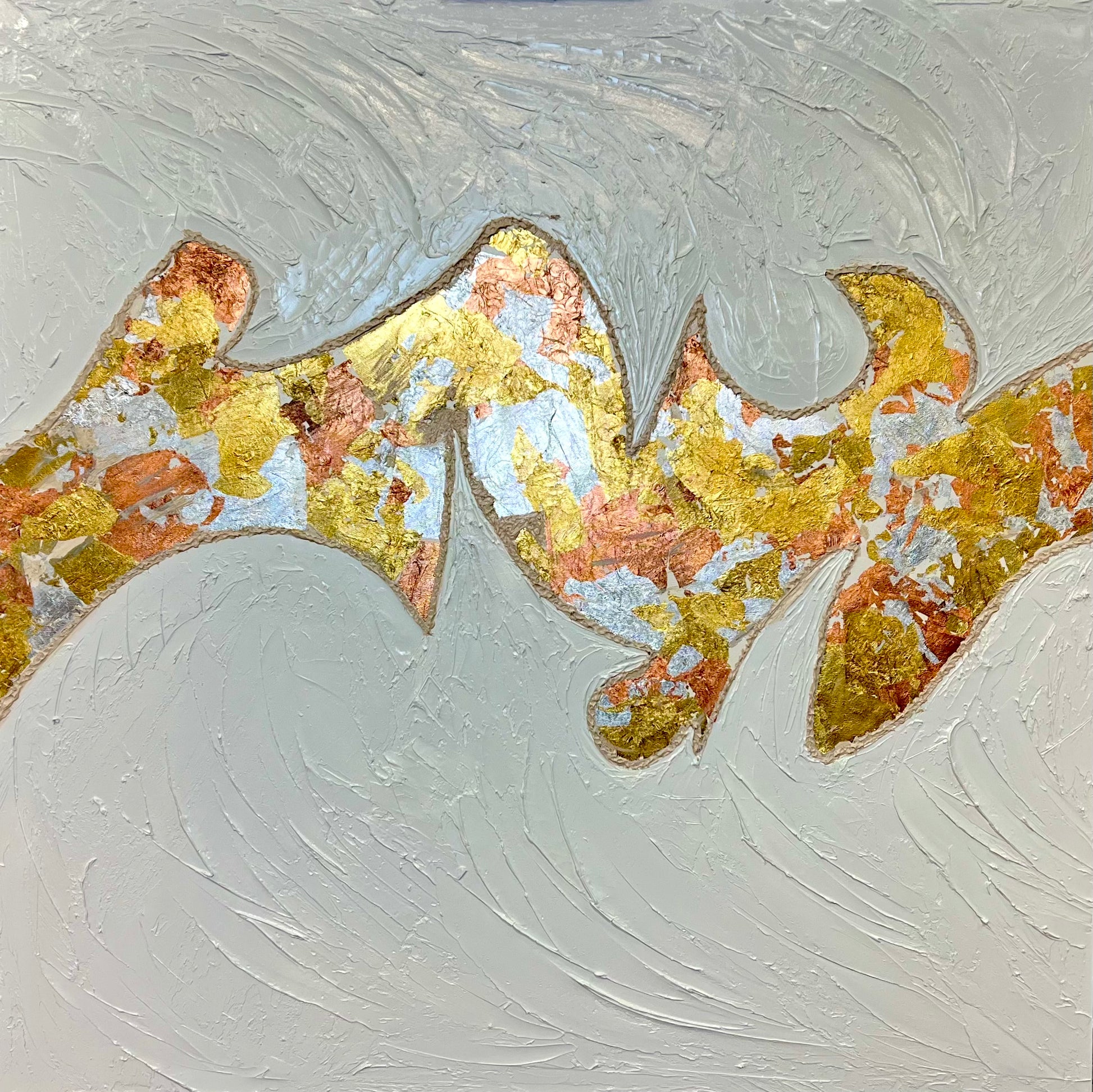 Acrylic paint, gold-silver-bronze leaf, modeling paste