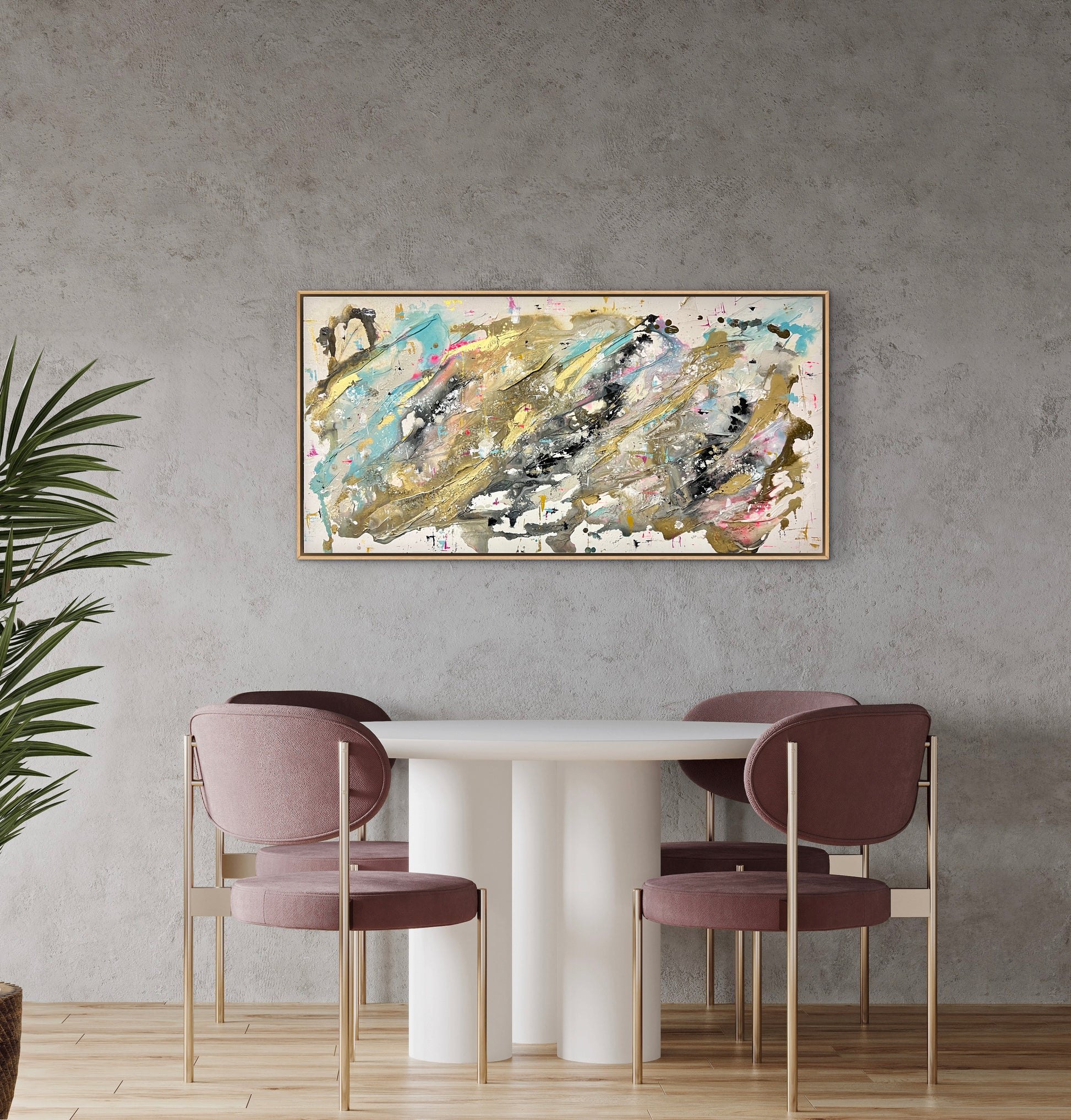 Acrylic paint/ modeling paste/gold leaf
