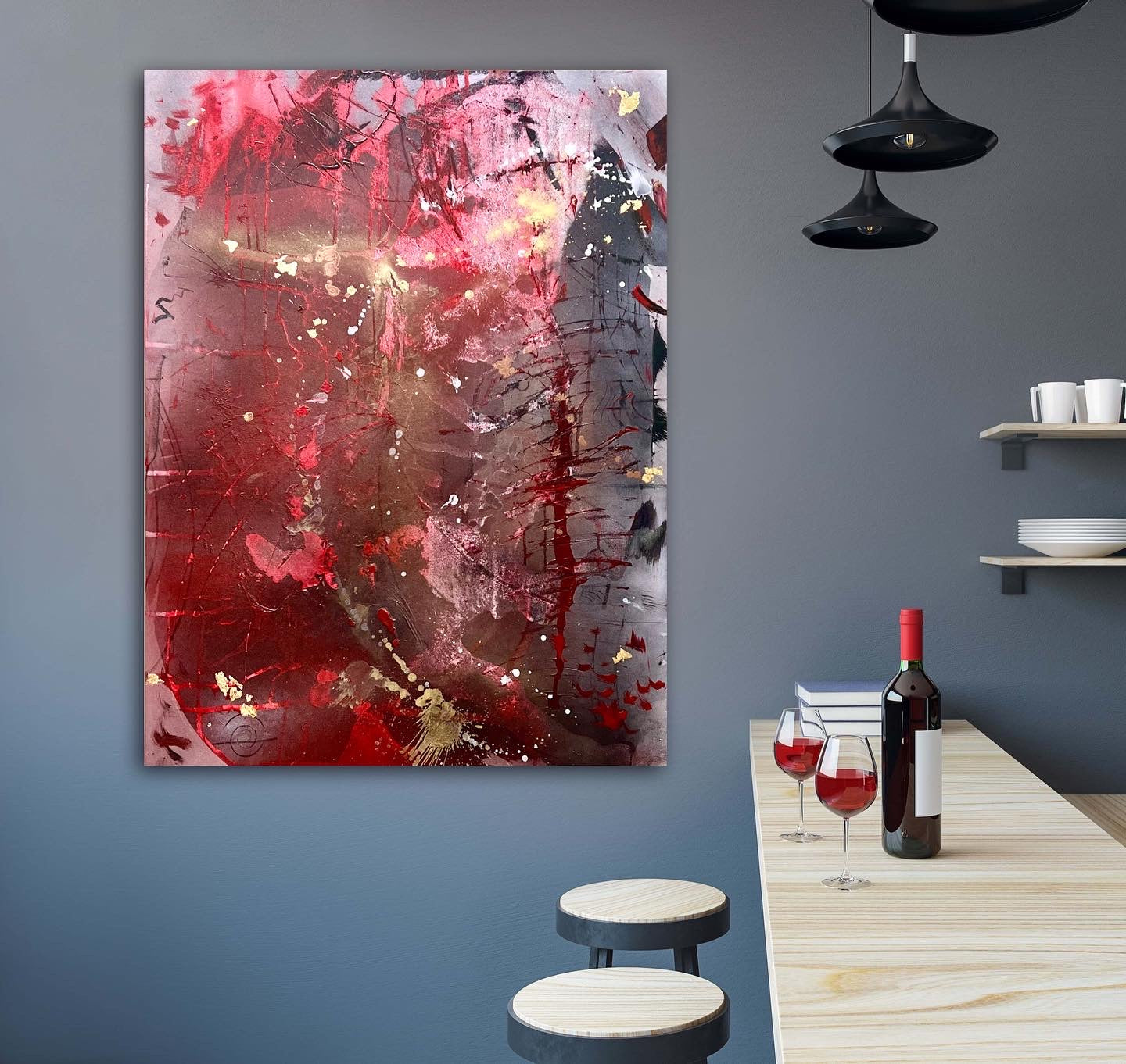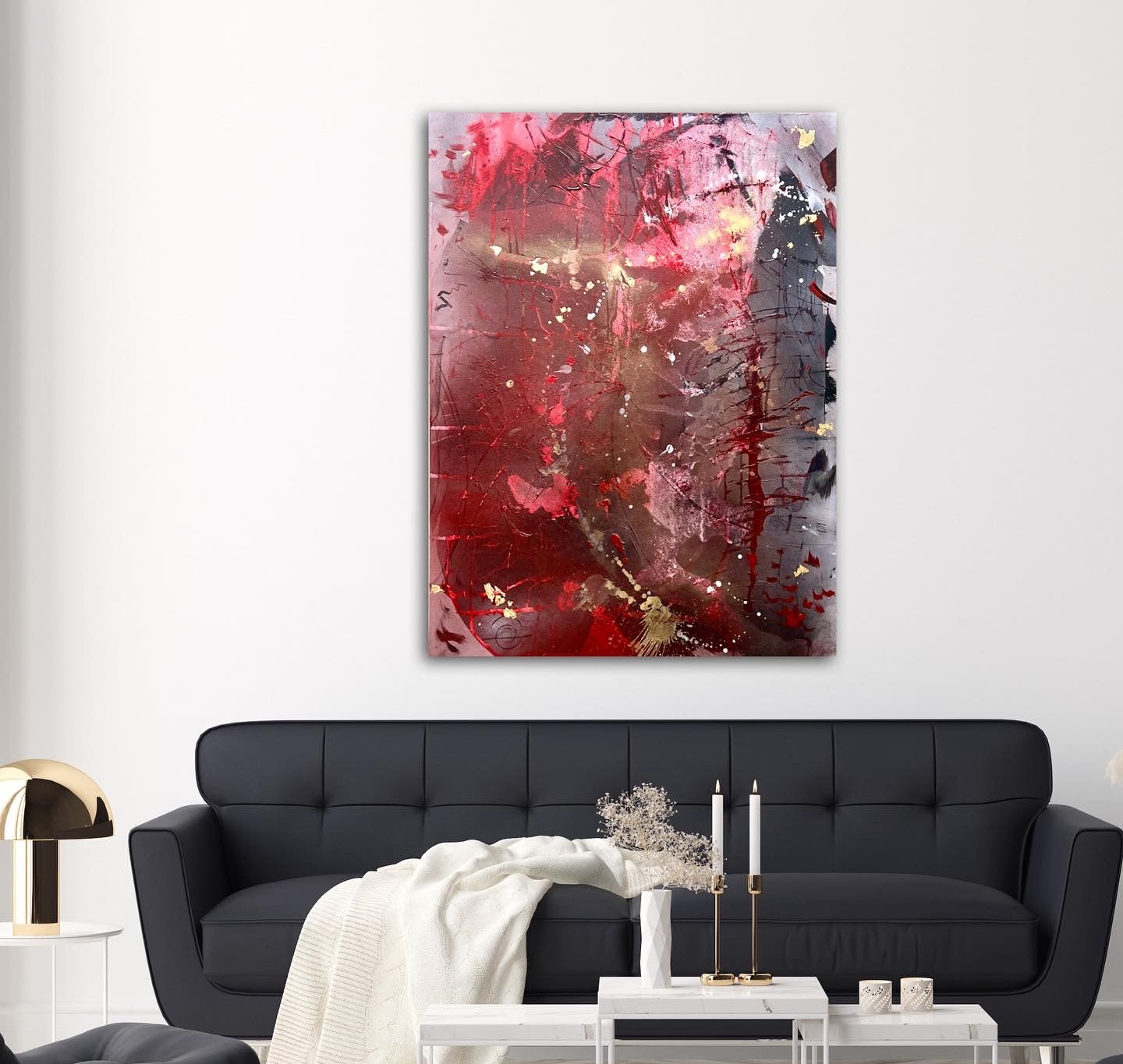 Acrylic paint, gold leaf, charcoal